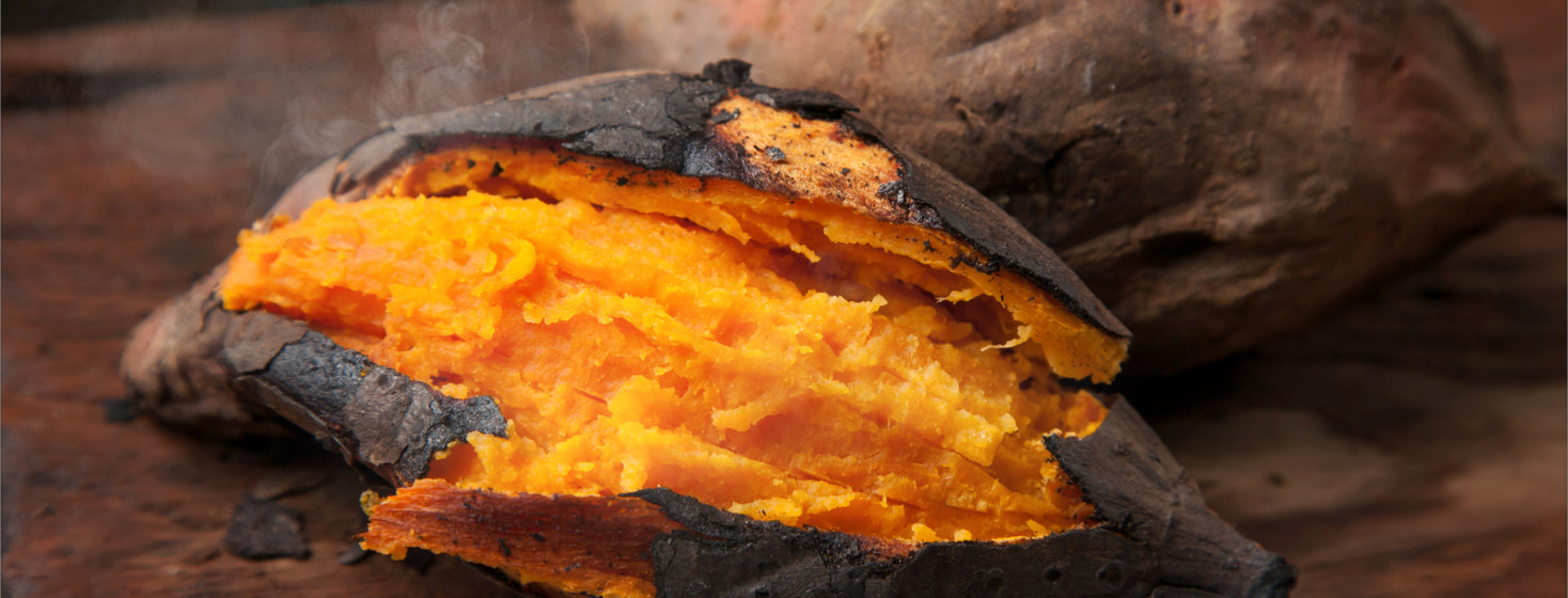 - Remove sweet potatoes from oven and slice open (lengthwise with a knife).